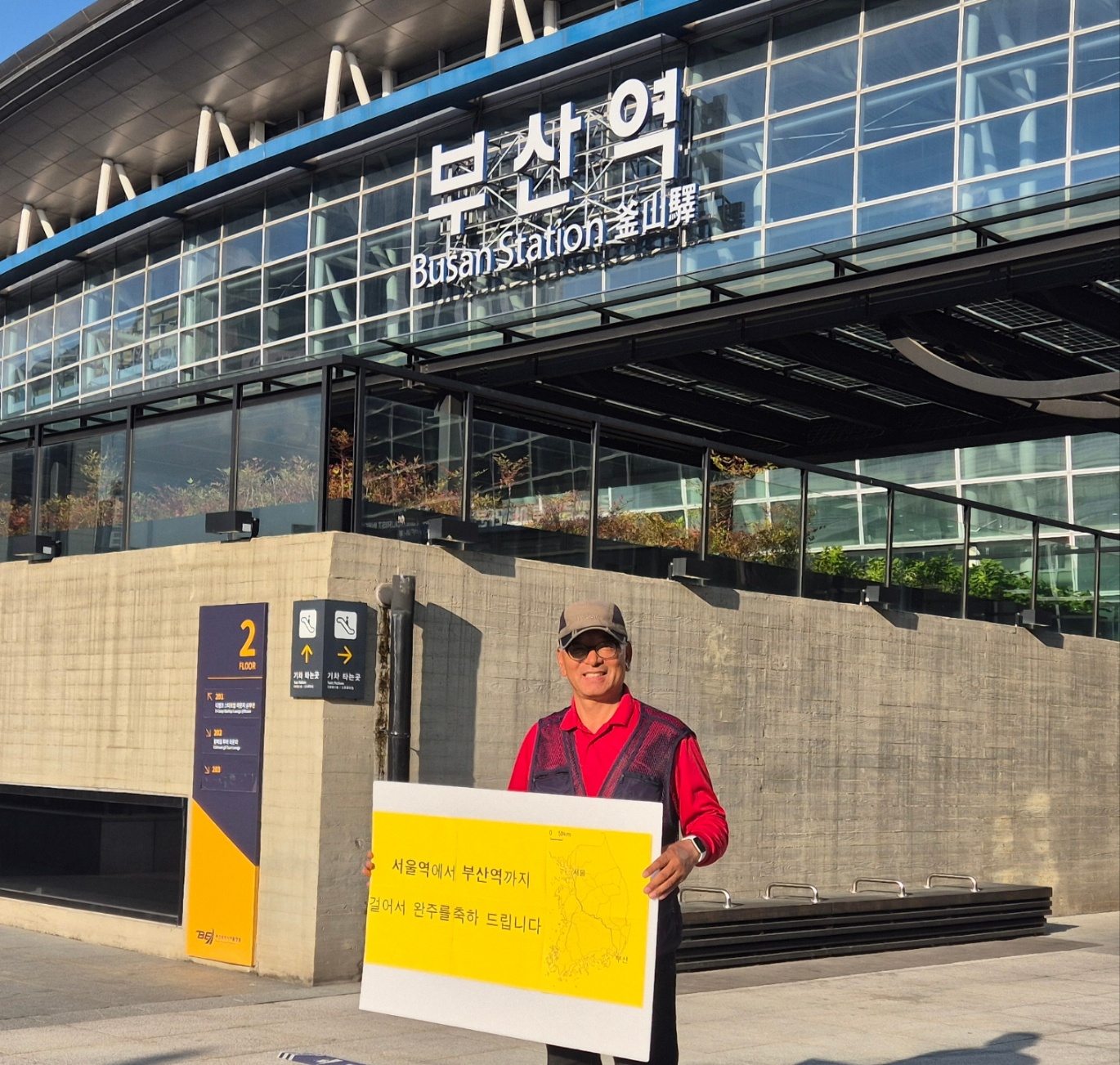 최종 목적지인 부산역 도착하여 기념 촬영 중