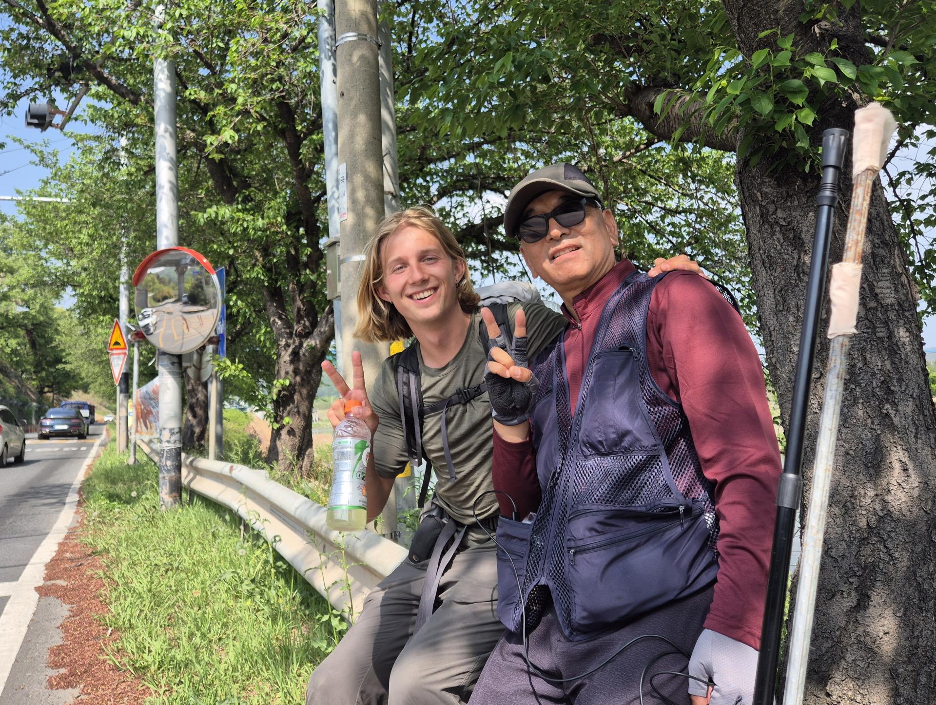 국토 종주 중 대구와 밀양 부근에서 서울에서 부산까지 걸어가고 있는 젊은이들을 만나 짧은 대화를 나눈 에피소드도 있었다. 덴마크에서 온 21살 여행객과 전역한 지 1년 된 젊은이를 만나면서 "젊은이들이 시간을 이렇게 보내는 것이 정말 대단하다"고 감탄하며 많은 생각을 하게 되었다고 말했다.
